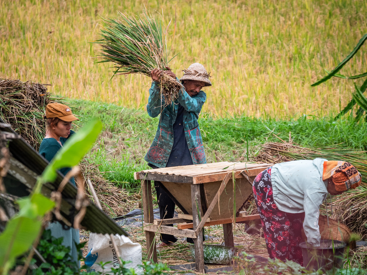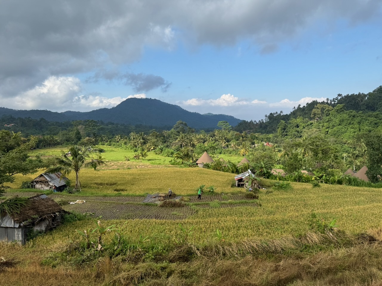 Le paysage est dominé par les rizières en terrasses, étagées le long des pentes douces de la vallée.