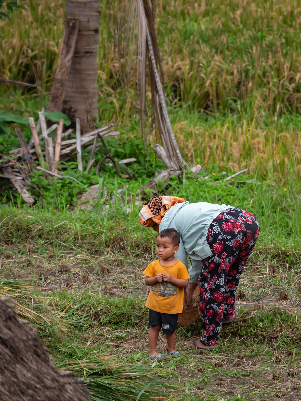 La marche dans les rizières implique des chemins parfois étroits et irréguliers. L’environnement reste néanmoins accessible et ouvert.