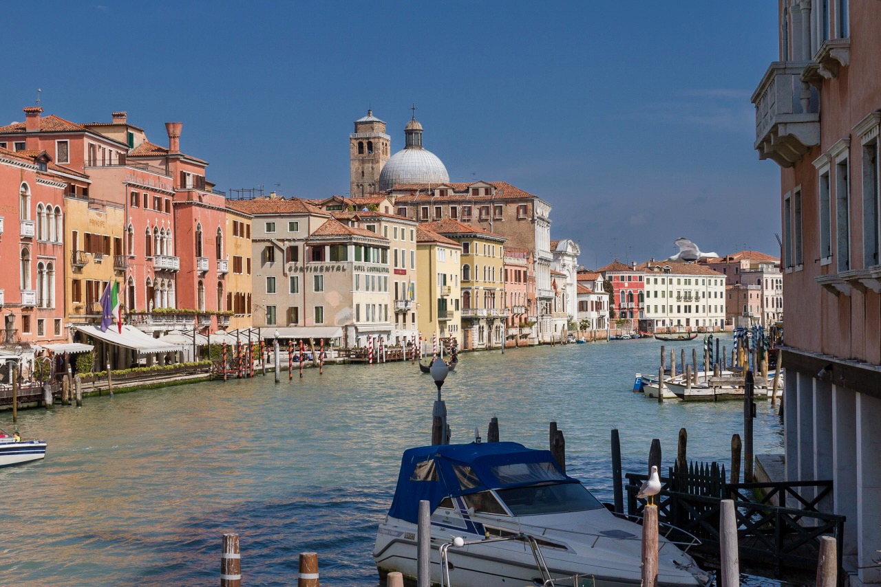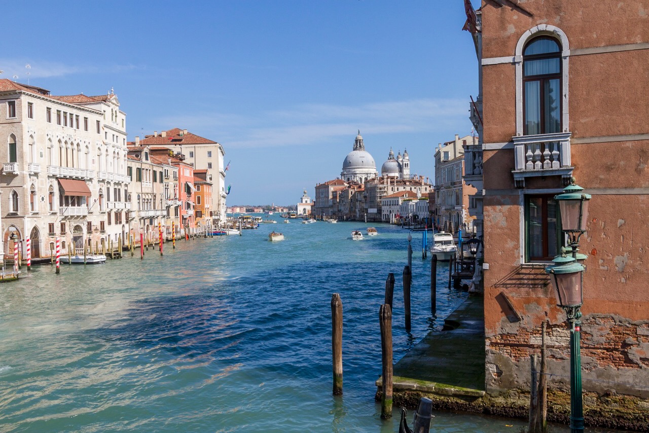 Le Grand Canal traverse la ville en formant une large courbe.