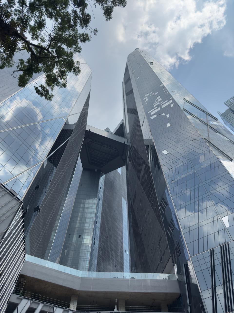 Les bâtiments administratifs et les centres commerciaux s’intègrent dans un paysage fortement verticalisé.