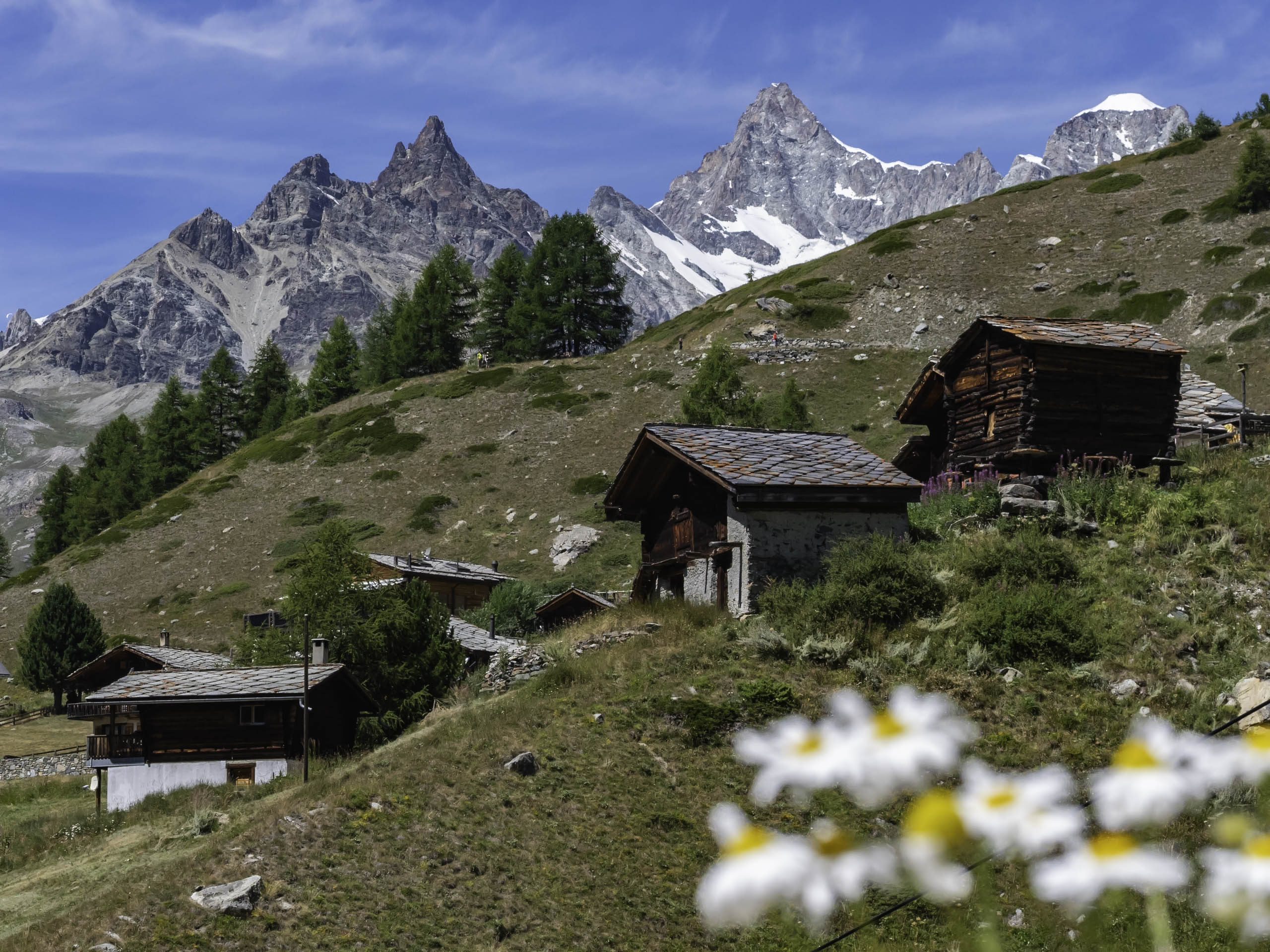 - Cervin (Matterhorn) : omniprésent, meilleur rendu au lever/fin de journée.